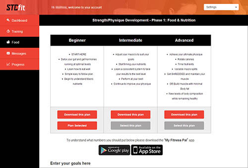 3 goal dependent training programs (Fat Loss, Performance, Strength/Physique Development)